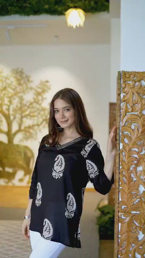 Black Cotton Geometric Print Top - Pure Cotton – Tushita Vibes - Trendy Indian Ethnic Clothing Skip to content