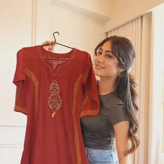 Add a touch of traditional elegance to your wardrobe with this beautifully crafted Maroon Cotton Kurta Set. Designed with intricate mirror and thread embroidery on the front and sleeves, this outfit blends simplicity with grace.