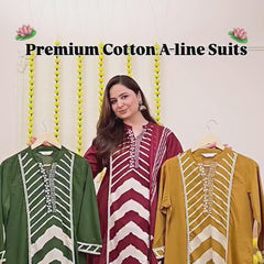 Premium Cotton A-Line Suit Set | Embroidered Elegance with Dupatta