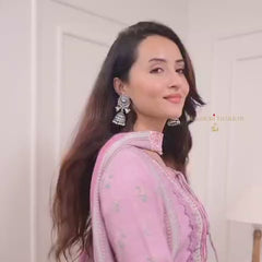 A soft and luxurious muslin suit set featuring intricate floral prints, lace-detailed sleeves, and a beautifully coordinated dupatta. Lightweight, elegant, and perfect for festive or casual outings.
