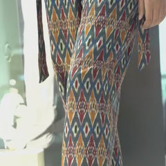 Design: Stylish Ikat-inspired geometric print with vibrant colors