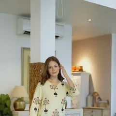 This yellow floral print cotton top is ideal for women who love cheerful colors and botanical-inspired designs. The unique flower pot print makes it a conversation starter, while the comfortable cotton fabric ensures you stay cool and stylish throughout the day.